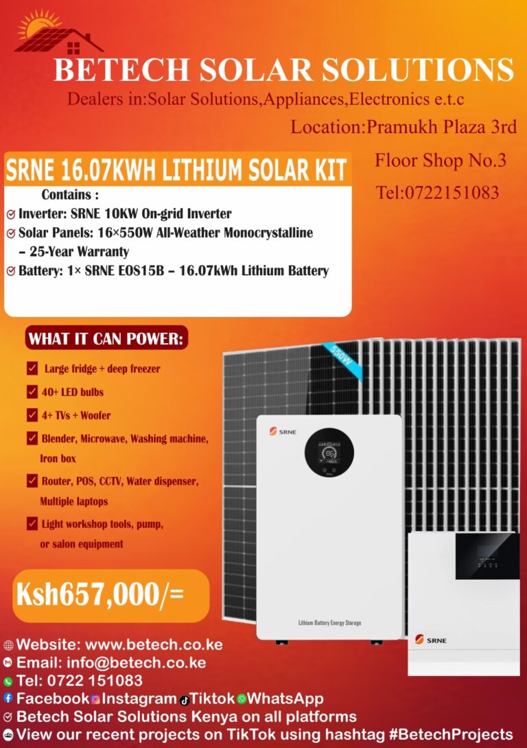 KSh 610,000.00SRNE 5.12KWh Lithium Solar Kit with Solarmax 6.2KW Inverter