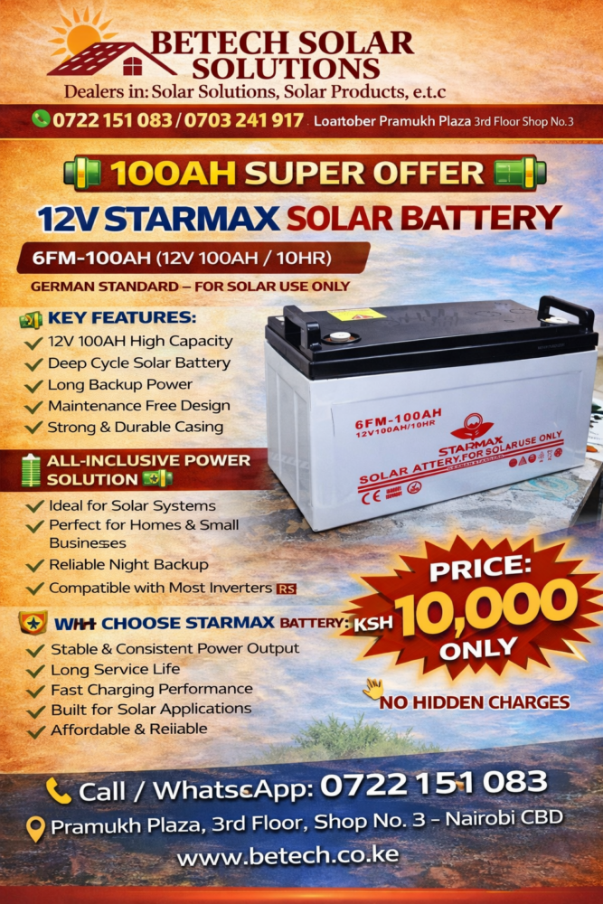 KSh 12,500.0010kw 10000watts 10kva Must -Amizar Tubular Solar System Kit