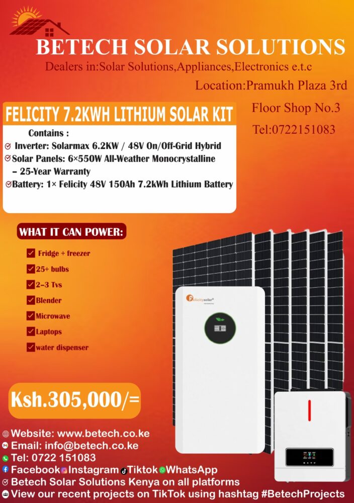 KSh 160,000.003kw 3000Watts 3Kva Felecity Lithium Solar Kit