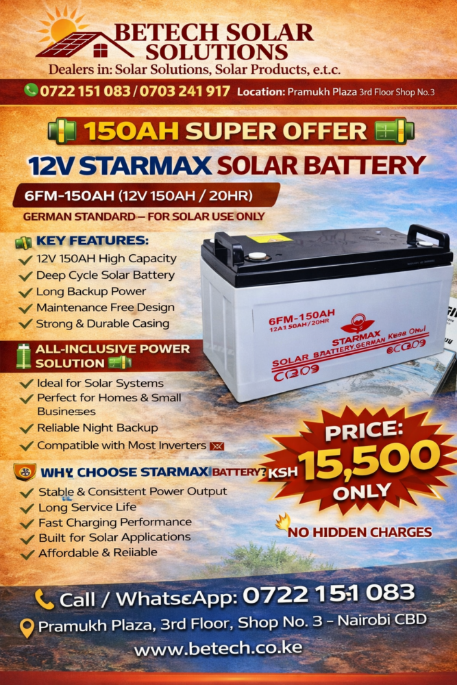 KSh 196,390.00STARMAX 150W FULL SOLAR KIT + 32” SMART TV